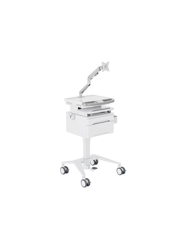 Multibrackets M Basic cart - for LCD display / keyboard / mouse / notebook - with drawer fixed arm - white silver 7.5 kg 100 x 100 mm